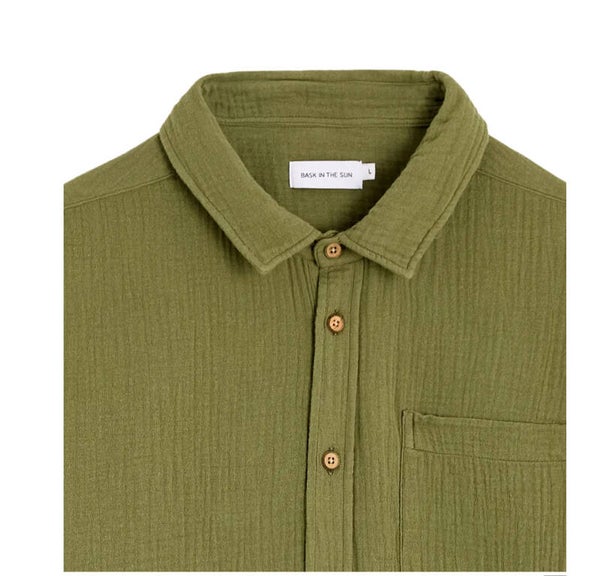 Chemise très légère en gaze de coton biologique. Boutons en bois naturel. Deux poches asymétriques.