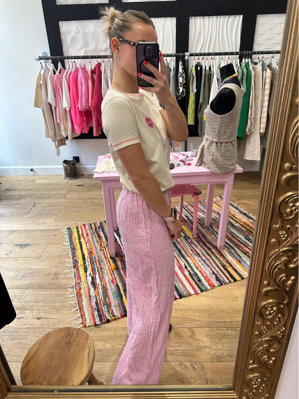 Pantalon fluide en gaze de Côton à rayure